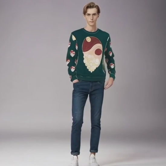 DESIGN FESTIF UNIQUE - Illustration exclusive du masque "Le Père Noël" - Couleurs vibrantes et motif humoristique - Style "ugly Christmas sweater" tendance - Parfait pour photos de famille mémorables - Ambiance garantie à toutes vos soirées
